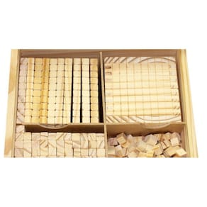 Uso: o material dourado foi idealizado pela médica e educadora italiana maria montessori com o objetivo de auxiliar o ensino e a aprendizagem do sistema de numeração décima-posicional, as operações fundamentais, frações-decimais, medidas, etc. Manuseando o material, a criança tem a possibilidade de fazer uma imagem concreta das relações numéricas que são abstratas. Isto proporciona o desenvolvimento do raciocínio e o aprendizado muito mais agradável. Desenvolve: raciocínio, numeração decimal-posicional, operações fundamentais, frações decimais, medidas, inequações, etc. Idade: 1 até a 8 série / 07 anos. Composição: caixa de madeira medindo 12x25x25cm. Contém: 611 peças de madeira na cor natural: 1 cubo de milhar, 10 placas de centena, 100 barras de dezena e 500 cubos de unidade.