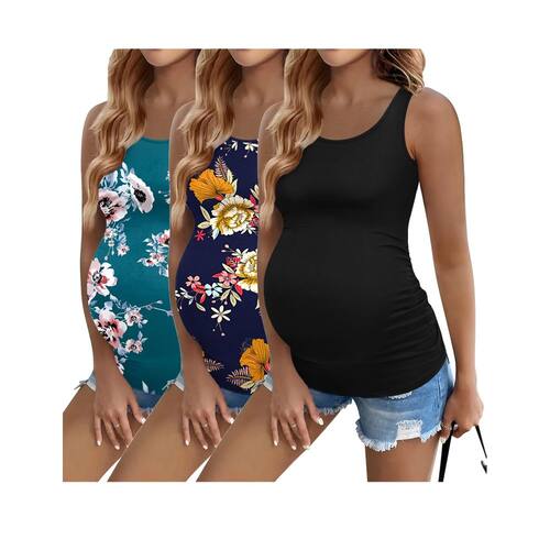 Ekouaer Pacote com 3 regatas femininas para gestantes, camisetas básicas de verão, pós-parto, sem mangas, roupas de treino para gravidez, Preto/Azul Marinho Floral/Azul Verde Floral - ??Costura lateral?Esta regata com gola redonda e lateral franzida pode ser ajustada automaticamente de acordo com o tamanho da barriga do bebê para que você tenha a experiência mais confortável em todas as fases da gravidez. - ??Material?Regata Ekouaer para maternidade sem mangas feita de 95% poliéster, 5% elastano. Este tecido não é apenas amigo da pele, respirável e confortável, mas sua boa elasticidade também pode criar uma boa silhueta para mães grávidas. - ??Pacote com três?Este colete de maternidade é um item essencial para mulheres grávidas. Nosso conjunto de três peças tem um desempenho de alto custo e vale a pena comprar, e há uma variedade de combinações de cores para você escolher para que você possa usar suas roupas favoritas durante a gravidez. - ??OCASIÃO?Perfeito para uso diário, passeios casuais e esportes. Pode ser combinada com shorts, leggings, jeans e saias, fácil de colocar seus sobretudos e jaquetas favoritos. Portanto, seja em ambientes internos ou externos, pode ser sua melhor escolha para vestir. - ??Adequado para todos os estados?Esta camiseta de maternidade pode ser usada no início da gravidez, no meio da gravidez e no final da gravidez, então este vestido pode ser um presente surpresa para sua esposa grávida.