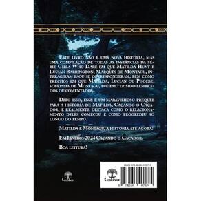 Este livro não é uma nova história, mas uma compilação de todas as instâncias da série Girls Who Dare em que Matilda Hunt e Lucian Barrington, Marquês de Montagu, interagiram e/ou se corresponderam, be m como trechos em que Matilda, Lucian ou PhoebeEBE, sobrinha de Montagu, podem ter sido lembrados ou comentados. Dito isso, esse é um maravilhoso prequel para a história de Matilda, Caçando o Caçador, e realmente destaca como o relacionamento deles começou e como progrediu ao longo do tempo. Matilda e Montagu, a história até agora! Em Janeiro 2024 Caçando o Caçador. Boa leitura! Marca: Leabhar Books Editora Ean: 9786554441674