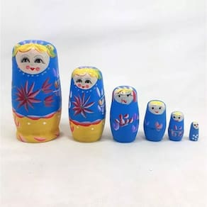 Matrioska Russa Azul B 6 Bonecas Uma Dentro Da Outra 14 Cm Matryoshka, boneca russa é um brinquedo tradicional Da Rússia, constituída por uma série de bonecas, feitas de Diversos materiais, que são colocadas umas dentro das outras, Da maior exterior até a menor