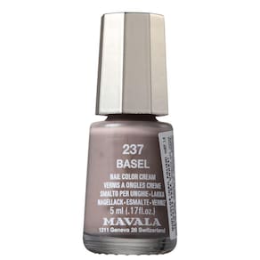 Esmalte marrom acinzentado cremoso. Mavala Mini Color Basel cor tendência, muito bem pigmentada e de longa duração. Embalagem pequena e super prática, que evita desperdício de produto.