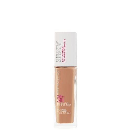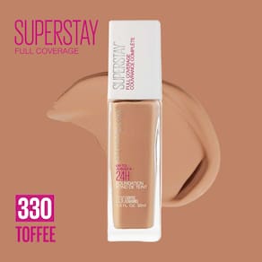 Base líquida. Maybelline Superstay Full Coverage proporciona duração de 24 horas e permanece intacta mesmo sobre condições de calor e umidade.