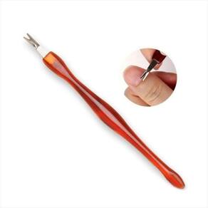 3. Posicione o aparador na superfície da unha e utilize a ponta em V para aparar a ícula em excesso.