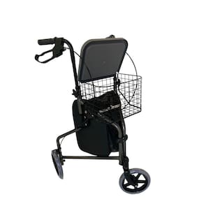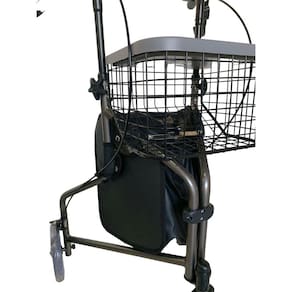 Descrição técnica:Confeccionado em alumínioPintura Eletrostática epóxi PRATA Totalmente dobrávelFreios na manoplaBolso para guardar pertences3 Rodas 8 em PU maciçoRegulagem de altura do Manete de freioIdeal para pessoas até 1,85mAcompanha Cesto uso opcional.