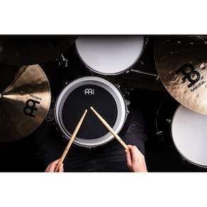Pad de treino com dois lados, composto por silicone padrão e espuma "Marshmallow" quase silenciosa, ideal para desenvolver musculatura. Lado de silicone: o silicone médio-macio oferece um rebote parecido ao de uma pele de tambor com tensão média, com redução de ruído para praticar discretamente em qualquer lugar. O retorno realista simula uma pele verdadeira, facilitando a transferência da memória muscular para o kit real. Lado Marshmallow: é o material mais silencioso utilizado pela MEINL Cymbals. A espuma especial "Marshmallow" absorve praticamente todo o som das baquetas e reduz o rebote para acelerar o desenvolvimento muscular.