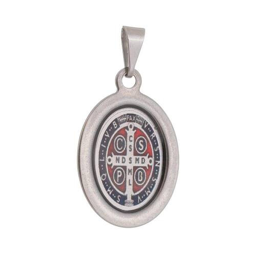 Medalha em inox com imagem de São Bento em resina colorida, para Cadeia de Consagração
