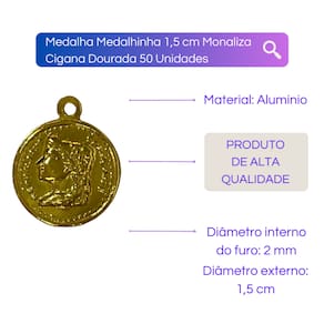 Medalha Medalhinha 15 cm Monaliza Cigana Dourada 50 Unidades