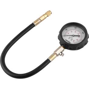 Conteúdo da Embalagem: 1 Medidor de compressão. Acompanha: 1 maleta contendo 17 peças, sendo: 1 adaptador universal; 10 adaptadores para vela de aquecimento nas medidas diâm. x comp.: M10 x 1,0: 83 mm / M10 x 1,0: 91 mm / M10 x 1,0: 102 mm / M10 x 1,0: 113 mm / M10 x 1,0: 119 mm / M10 x 1,25: 64 mm / M10 x 1,25: 135 mm / M12 x 1,25: 47 mm / M18 x 1,5: 160 mm / M22 x 1,5: 118 mm; 4 adaptadores para injetor nas medidas(diâm. x comp.: M20 x 1,5: 75 mm / M22 x 1,5: 73 mm / M24 x 1,5: 88 mm / M24 x 2: 63 mm; 1 suporte H com rosca M18 x 1,5 e 1 adaptador cilíndrico. Possui manômetro de 4" com escalas de 0 - 1000 lbf/pol e de 0 - 70 bar. Conta com mangueira flexível com 355 mm de comprimento e sistema de alívio de pressão. Acompanha maleta plástica, que facilita a organização e o armazenamento. Indicado para medição da compressão do motor, adequado para modelos a diesel. Tipo do motor:Diesel Capacidade:0 - 1.000 lbf/pol / 0 - 70 bar Acoplagem:Direta