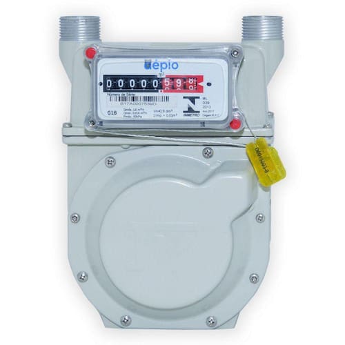 Medidor de gás Aépio G 1.0Aépio medidores de gás, aprovados pelo INMETRO. Mais vazão, durabilidade e qualidade.Características*:-Os medidores seguem as normas internacionais mais exigentes de fabricação, INMETRO e OIML R31.-Presença do Inmetro em todos os ensaios de medidores.-100% dos equipamentos são inspecionados e lacrados na fábrica no Brasil, através de bancadas de verificação de última geração.-Garantia de 2 anos pelo fabricanteDados Técnicos*:Vazão Máxima Qmax : 1,6 m³/hVazão Mínima Qmax : 0,016 m³/hLeitura Mínima: 0,2 dm³Pressão Máx. Trabalho: 50 kPaTotalizador Máximo: 99.999,999Embalagem:-1 medidor Aépio-Conexão entrada e saída de gás 3/8 SAE macho Marca: Épio