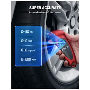 Assista o nosso VÍDEO no lado esquerdo e faça um tour rápido no medidor de pressão de pneus da AstroAI! Display LCD retroiluminado e bico iluminado para visibilidade em áreas com pouca luz, um presente ideal para homens e mulheres. Projetado para manter a pressão correta dos pneus, reduzir o desgaste dos pneus e estender a vida útil dos mesmos. Leitura digital instantânea e clara exibida, acabando com a incerteza dos medidores analógicos. Bico forma facilmente um selo com a válvula em válvulas Schrader e hastes Presta com adaptador de válvula, fornecendo leituras rápidas e precisas em incrementos de 0,1. 4 configurações com alcance de 0150PSI 010Bar 010Kgfcm ou 01000KPA. Basta pressionar o botão "LIGADESLIGA" para ligar a ferramenta, selecione o alcance e desligue automaticamente em 3040 segundos para economizar energia. Textura antiderrapante facilita a aderência e o design ergonômico é adequado tanto para mãos masculinas quanto femininas. Medidor é resetado automaticamente ao medir a pressão, sem necessidade de calibrar. Bateria incluída. Uso versátil para carros, caminhões, motocicletas, bicicletas, etc. O medidor de pressão de pneus da AstroAI é de alta qualidade. Se houver algum problema durante o transporte ou erro de funcionamento, basta devolver. Sempre visamos fornecer aos nossos clientes produtos excelentes e serviço de atendimento ao cliente de qualidade.