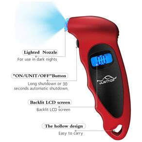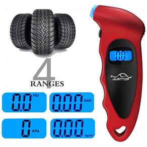 Medidor de Pressão de Pneus Digital JUSTTOP, 150 PSI 4 Configurações para Carros, Caminhões e Bicicletas, Display LCD Retroiluminado