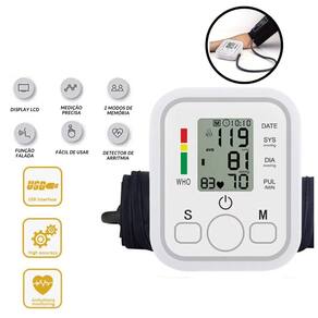 Medidor do pulso - controle eficiente Mantenha as medições arterial e pulsação sempre em dia com este incrível equipamento avançado que realiza leituras da pressão sistólica, diastólica e de pulso, além de detectar arritmia cardíaca e possui indicador de hipertensão. Sua tecnologia inteligente permite o controle da inflação ao nível ideal, proporcionando uma medição mais confortável e precisa. Funções técnicas: - indicador de arritmia. - indicador gráfico de nível de hipertensão. - indicador de batimentos cardíacos. - detecta batimentos cardíacos irregulares - operação simples basta um toque para ligar e medir automaticamente. - desligamento automático: 1 minuto. - recurso de hora e data para até 2 usuários. - mede pressão sanguínea sistólica e diastólica e pulsação frequência cardíaca - memória total de 198 resultados com hora e data. - tela digital lcd: alta resolução e baixo consumo de energia - possui função de voz, fala o resultado obtido em português - possui 2 unidades de medida: kpa e mmhg. - precisão clinicamente comprovada de acordo com os protocolos do inmetro - certificados: ce, iso e rohs - braçadeira com circunferência de 22 cm a 32 cm extra grande , fácil de usar e ajustável. atende aos pacientes obesos . - método de medição: oscilométrico; - medição no braço - alimentação: 4 pilhas aaa ou por entrada micro usb - totalmente automático: controle de inflação e liberação rápida - faixa de medição: - pressão sanguínea: 40mmhg - 280mmhg 5.3kpa - 37.3kpa / - ritmo cardíaco: 40x/min - 195x/min - precisão da medição: - pressão: +-0.4kpa +-3mmhg / - ritmo cardíaco: - 5% - peso: 330g sem pilhas Itens inclusos 01 medidor . 01 estojo para armazenamento 01 braçadeira extra grande 22 cm x 32 cm 01 manual de instruções Produto possui registro e certificação nº 2020202070176 Produto nº 20200328 - gb9706.1-2007 Fda registration certificate fiscal year 2020 nº 10072274 Certificate of conformity fda nº 10064773 Certification europe nº iso13485:2016 Lot: wo2005001 ====================== Dúvidas frequentes - o medidor é à pilha ou fonte Você pode escolher se prefere usar com pilha, ou fonte usb. - o produto é resistente Trabalhamos apenas com produtos com material de altíssima qualidade, durabilidade e procedência. Marca: Não Informado