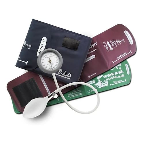 Kit Aparelho De Medir Pressão Ds-44 Welch Allyn + Braçadeiras 9 ,11 e 12Incluso 3 Bracadeiras:- Acompanha Braçadeira FlexPort crianca No 9 (15 a 21cm - diâmetro do braço) em nylon com fechamento de contato super resistente;- Acompanha Braçadeira FlexPort adulto No 11 (25 a 34cm - diâmetro do braço) em nylon com fechamento de contato super resistente;- Acompanha Braçadeira FlexPort adulto grande Obeso No 12 (32 a 43cm - diâmetro do braço) em nylon com fechamento de contato super resistente; É um aparelho de pressão leve e sem látex. O manômetro é extremamente resistente a quedas e possui uma capa amortecedora de impactos. Sua braçadeira não possuem dobras e diminui os riscos de corte e arranhões proporcionando um maior conforto durante a aferição para o paciente. Possui manômetro giratório conectado no manguito. Proporciona leituras exatas. Mantêm leituras mais precisas ao longo do tempo, enquanto elimina a necessidade de calibragem e substituição constantes. Manômetro- Resultados precisos- Design ergonômico que permite trabalhar com mão direita ou esquerda;- Manômetro gira 360° para fácil visualização;- Anel de borracha para proteção (cinza).- Resistente a quedas continuas- Pode ter uma queda de até 76 cm, não quebra e não perde a calibração;- Garantia de calibração por 5 anos;- Sem engrenagens, isto é, menos partes dentro do aparelho BRAÇADEIRA WELCH ALLYN CRIANÇA REUSÁVEL FLEXIPORT 9 Reutilizável- Com conexão flexiport- As bordas não possuem dobras e diminuem riscos de cortes e arranhões, proporcionando mais conforto.- Com marcador de artéria- Possui registro e logo do Inmetro- Tamanho: 15-21cm;- Cor: Verde;- Modelo: Criança;- Tamanho: 09. BRAÇADEIRA WELCH ALLYN CRIANÇA REUSÁVEL FLEXIPORT 11Reutilizável- Com conexão flexiport- As bordas não possuem dobras e diminuem riscos de cortes e arranhões, proporcionando mais conforto.- Com marcador de artéria- Possui registro e logo do Inmetro- Tamanho: 25-34cm;- Cor: Cinza;- Modelo: Adulto;- Tamanho: 11. BRAÇADEIRA WELCH ALLYN GRANDE REUSÁVEL FLEXIPORT 12 - Reutilizável- Com conexão flexiport- As bordas não possuem dobras e diminuem riscos de cortes e arranhões, proporcionando mais conforto.- Com marcador de artéria- Possui registro e logo do Inmetro- Tamanho: 32-43 cm- Cor: Vinho- Modelo: Adulto Grande- Tamanho: 12 Especificações Técnicas- Faixa de medição: 6 mmHg a 304 mmHg;- Divisão de Escala: 2 mmHg;- Precisão: ± 3 mmHg;- Livre de látex. Conteúdo da embalagem:- Manômetro DS44 com anel amortecedor de borracha na cor cinza (com selo de aprovação do INMETRO);- Acompanha Braçadeira FlexPort crianca No 9 (15 a 21cm - diâmetro do braço) em nylon com fechamento de contato super resistente;- Acompanha Braçadeira FlexPort adulto No 11 (25 a 34cm - diâmetro do braço) em nylon com fechamento de contato super resistente;- Acompanha Braçadeira FlexPort adulto grande No 12 (32 a 43cm - diâmetro do braço) em nylon com fechamento de contato super resistente;- Pera insufladora;- Tubo;- Certificado de calibração INMETRO;- Manual e GarantiaCertificado Pela Anvisa: 80011680050