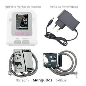 Conteúdo da Embalagem: 01 Aparelho Medidor Pressão Pet Veterinario Contec C08A-VET 01 Manguito Tamanho P 01 Manguito Tamanho M 01 Fonte de Alimentação 01 Manual de Instruções