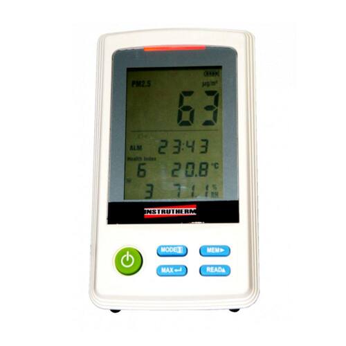 MEDIDOR DE QUALIDADE DO AR MOD. QA-100 COM CERTIFICADO CALIBRAÇÃO RASTREÁVEL DESCRIÇÃO: Características Medição de Finas partículas de material (PM2.5). Medição de Temperatura e Umidade. Indicador com detecção e alarme de Saúde de 0 a 9. Leitura da média de tempo medido de PM2.5. Função de Data hold e MAX/MIN com indicação de tempo. Indicação no LED de 3 cores da qualidade do ar (boa/moderada/ruim). Ponto de alarme com buzzer pré-configurado, saída de LED e alarme. Função de memória de dados manual e leitura. ESPECIFICAÇÕES TÉCNICAS: Escala de Medição: PM2.5 : 0 a 500µg/m3 Umidade : 1% a 99%U.R. Temperatura : -20? a +60? (-4? a +140?) Resolução: 0.1µg/m3, 0.1% U.R., 0.1?, 0.1? Precisão: PM2.5 : ±10% da leitura±10µg Temperatura : ±0.8?, ±1.5? Umidade : ±3%UR (em 25?, 30 a 80% UR).±5%UR (em 25?, 0 a 20% UR e 80 a 100% UR). Tipo de Sensor: PM2.5 : Sensor de Fotodiodo. Umidade : Sensor preciso de capacitância Temperature : Sensor Termistor Tempo de Resposta: Umidade : 45%U.R. a 95% U.R. <= 1min 95%U.R. a 45%U.R. <= 3min Temperatura : 10?/2 sec.v •Taxa de Amostragem: 1 amostra/segundo. Capacidade da Memória: 39 medições. (lidas diretamento do display) Capacidade do Datalogger: Cartão microSD de 4GB Temperatura e Umidade de Operação: 0? a 60?, abaixo de 95% U.R. Temperatura e Umidade de Armazenamento:-10? a 60?, abaixo de 70% U.R. Alimentação:4x 1.5V LR-6/AA ou adaptador AC Duração da Bateria: Aprox. 8 horas Dimensões:165mm(C)×93mm(L)×75mm(A) , (6.5”C×3.7”L×3”A) Peso:Aprox. 380g (13.4oz) ACESSÓRIOS FORNECIDOS: Medidor de qualidade do ar QA-100 4 - Pilhas “AA” de 1,5 V AC Adaptador DC 6V 1000 mA. Certificado calibração rastreável Manual de instruções,