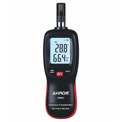 Kr921 - medidor de temperatura e umidade com indicação De ponto de orvalho e bulbo úmido psicrômetro digital Descrição geralO medidor de temperatura e umidade relativa do ar kr921 possui visor lcd de dupla indicação e fundo iluminado backlight , o que permite a sua utilização em locais pouco iluminados. Ele indica também as temperaturas de ponto de orvalho dew point e de bulbo úmido wet bulb , funcionando como um psicrômetro.Registra os valores de temperatura e umidade máximos e mínimos max/min , possui alarmes de temperatura e umidade baixas lo e altas hi em pontos fixos, permite congelar as indicações no visor hold , indica o nível de carga das pilhas e tem desligamento automático configurável, além de manter na memória um histórico de até 1000 medições.Especificações técnicasTemperatura: Faixa de medição: -20 a 70c Resolução: 0.1c Exatidão: +/- 1cUmidade relativa: Faixa de medição: 0 a 100%ur Resolução: 0.1%ur Exatidão: +/- 4%urPonto de orvalho dew point : Faixa de medição: -20 a 50c Resolução: 0.1c Exatidão: +/- 2cBulbo úmido wet bulb : Faixa de medição: -20 a 50c Resolução: 0.1c Exatidão: +/- 2cMemória interna: 1000 mediçõesIntervalo entre registros: 10sAlarme de alta hi : 35c / 80%ur não configurável Alarme de baixa lo : 10c / 10%ur não configurável Temperatura de operação: -20 a 70cUmidade de operação: 0 a 100%ur sem condensação Alimentação: 4.5v 3 pilhas aaa Dimensões l x a x p : 56 x 184 x 36 mmPeso: 100 gRecursos principais- visor de dupla indicação e iluminação de fundo backlight - indicação das temperaturas de ponto de orvalho dew point e bulbo úmido wet bulb - registro de máximas max e mínimas min - alarmes de baixa lo e alta hi em pontos fixos- registro de dados com leitura no próprio visor- congelamento das indicações no visor hold - seleção c / f- indicação do nível de carga das pilhas- desligamento automático após 15 minutos de inatividade configurável Itens inclusos- 3 pilhas aaa- manual de instruções em português
