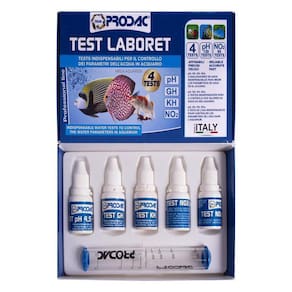 Prodac Test Laboret - laboratório de 4 testes Prodac PH acidez, neutralidade ou alcalinidade , GH magnésio e cálcio , KH carbonato e bicarbonato , NO2 NitritosProduto fabricado na ItáliaAcompanha manual de instruções em português para cada teste O Test Laboret da Prodac, consiste em um mini laboratório com os quatro principais testes para aquário de água doce. O laboratório Test Laboret é muito prático, especialmente para quem está iniciando no aquarismo e precisam se familiarizar com o controle de valores mais importantes da água. Posteriormente, todos os testes podem ser adquiridos separadamente.Quantidade de testes:A quantidade de testes suportada depende de quantas gotas se utiliza em cada testeO Prodac Test Laboret inclui os testes de:1 - Prodac Test PH para medir a acidez, neutralidade ou alcalinidade da água2 - Prodac Test GH para medir a dureza total da água magnésio e cálcio 3 - Prodac Test KH para medir a dureza carbonatada da água carbonato e bicarbonato 4 - NO2 para medir os níveis de Nitritos decomposição de resíduos orgânicos Prodac Teste de PH para aquário:Faz até 130 testesO pH da água do aquário se refere à acidez, neutralidade ou alcalinidade da água.O valor de pH ideal para os peixes de água doce é entre 6.8 e 7.0, se for inferior, é necessário aumentar até ao nível referido utilizando um produto específico como o MUTAPHI M de PRODAC, se for superior, é necessário diminuir utilizando um produto específico como o MUTAPH D da PRODAC. Ciclídeos africanos: pH básico, de 7.4 a 8.5 Molinésia: pH básico, de 7 a 8.5Matogrosso: pH ácido, de 5.5 a 7.Neon: pH ácido: de 4.5 a 7.Prodac teste de GH dureza total da água magnésio e cálcio A dureza é a medida de íons cálcio Ca++ e magnésio Mg++ na água. A água dura é frequentemente proveniente de aquíferos de pedra calcárea, ricos em CaCO3.Medidas de dureza:Existem duas formas de medição de dureza, sendo elas grau de dureza dH ou partes por milhão ppm . Um grau de dureza geral dH é definido como 10 mg / L CaO Cálcio , é equivalente a 17,85 ppm.Parâmetros de dureza de aquário de água doce:Quando o dH é de 0 a 6 e o ppm é de 0 a 100, a água é mole ou muito mole.Se o dH da água for de 6 a 25 e o ppm é de 101 a 449, é pouco dura ou dura.Quando o dH é 30 ou maior e o ppm é 450 ou maior, considere a água muito dura.Prodac teste de KH dureza carbonatada da água carbonato e bicarbonato O KH da água está relacionado ao nível de pH do aquário. Quanto maior a medição do KH, menor o pH do aquário sofrerá variação - e isso é bom para os peixes.Medidas de dureza:Existem duas formas de medição de dureza, sendo elas grau de dureza dH ou partes por milhão ppm . Um grau de dureza geral dH é definido como 10 mg / L CaO Cálcio , é equivalente a 17,85 ppm.Parâmetros de dureza de aquário de água doce:Quando o dH é de 0 a 6 e o ppm é de 0 a 100, a água é mole ou muito mole.Se o dH da água for de 6 a 25 e o ppm é de 101 a 449, é pouco dura ou dura.Quando o dH é 30 ou maior e o ppm é 450 ou maior, considere a água muito dura.Prodac teste de Nitrito NO2 para aquário:O Nitrito é produzido dia e noite no aquário pela degradação bacteriana da amônia, que é produzida pelo peixe e da decomposição de resíduos orgânicos.O nitrito é tóxico para os peixes e, em grandes quantidades pode ser letal. Se atingir o nível de 0,5 mg/l é necessário utilizar produtos imediatamente para a redução.Se apresentar um parâmetro maior que 1,0 mg/l significa um ambiente extremamente prejudicial ao habitat.Conteúdo da embalagem:2 - tubos de ensaio 1 - Test PH 4,5 - 9,01 - Test GH1 - Test KH1 - Test NO2 reagente 11 - Test NO2 reagente 21 - Gráfico de teste PH1 - Gráfico de teste NO2Manual de instruções para cada testeMantenha estes produtos fora do alcance das crianças, contém produtos químicos.