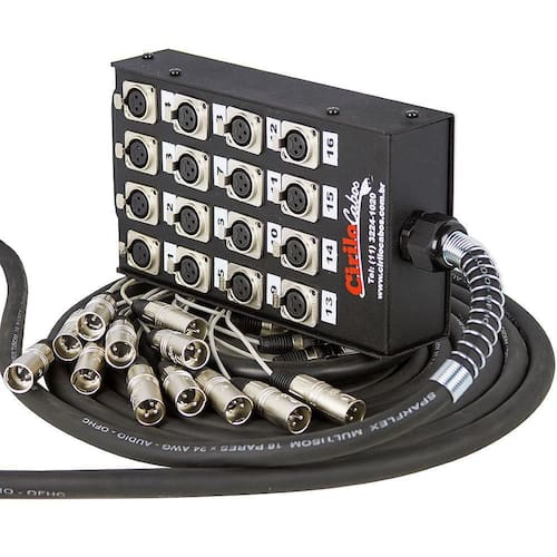 Medusa 16 Vias Montada Com Conectores Santo Ângelo 5 Metros A Medusa de 16 vias montada com conectores da Santo Ângelo, também conhecida como caixa de conectores ou banheira, oferece organização na distribuição dos seus canais. Ideal para a transmissão de áudio, oferecendo uma melhor qualidade entre os instrumentos e a mesa de som. Conta com alça para transporte e multicabos com molas de proteção. Para que serve a medusa As medusas montadas pela Cirilo Cabos, são bastante utilizadas para projetos de som, podendo ser ligados cabos de microfones XLR, instrumentos musicais com saídas P10 entre outros. Ao invés de você ter aquele monte de cabos passando pelo palco, você liga a medusa na mesa de som e estica um único cabo para ligar diversos equipamentos, tornando o sistema de som muito mais organizado. Tudo representado muito pouco no custo total. Onde a medusa é utilizada Palcos, Shows, Igrejas, Eventos entre outros. Marca do Multicabo: TiaFlex, SparFlex ou Datalink Conexão: XLR Macho e XLR Fêmea Vias: Multicabo 16 vias Isolação - Termoplástico resistente a altas temperaturas e baixa retração durante a solda. - Condutor dreno de cobre estanhado OFHC + fita de poliéster. - Cobertura em PVC emborrachado de alta flexibilidade e resistência mecânica gravado metro a metro. : 3 meses Precisa de uma configuração especifica Aqui na Cirilo Cabos nós temos diversas configurações, de 6 vias até 48 vias, podendo ser montadas de acordo com a sua necessidade. Dentro dessa variação de 6 a 48 vias o valor será o mesmo apresentado no site. Qualquer outra configuração acima disso, por favor, consulte nossos vendedores de Segunda á Sexta das 09:00 às 18:00. Marca: Não Informado