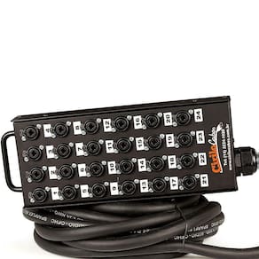Medusa montada pela Cirilo Cabos com conectores Combo, marca própria. A vantagem do combo é poder plugar dois tipos distintos de conectores, o XLR e o P10 plug banana. Na ponta dos cabos vão conectores XLR macho. Este produto é ideal para transmissão de som profissional, sem prejuízos na qualidade ou interferência de ruídos externos.