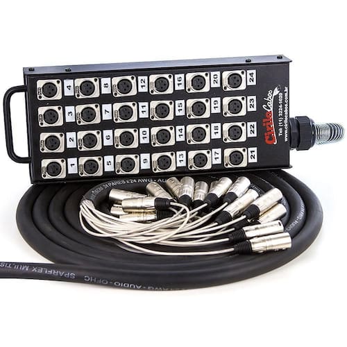 Medusa 24 Vias Montada Conectores Santo Angelo - 5 Mt A Medusa de 24 vias montada com conectores da Santo Ângelo, também conhecida como caixa de conectores ou banheira, oferece organização na distribuição dos seus canais. Ideal para a transmissão de áudio, oferecendo uma melhor qualidade entre os instrumentos e a mesa de som. Conta com alça para transporte e multicabos com molas de proteção. Para que serve a medusa As medusas montadas pela Cirilo Cabos, são bastante utilizadas para projetos de som, podendo ser ligados cabos de microfones XLR, instrumentos musicais com saídas P10 entre outros. Ao invés de você ter aquele monte de cabos passando pelo palco, você liga a medusa na mesa de som e estica um único cabo para ligar diversos equipamentos, tornando o sistema de som muito mais organizado. Tudo representado muito pouco no custo total. Onde a medusa é utilizada Palcos, Shows, Igrejas, Eventos entre outros. Marca do Multicabo: TiaFlex, SparFlex ou Datalink Conexão: XLR Macho e XLR Fêmea Vias: Multicabo 24 vias Isolação - Termoplástico resistente a altas temperaturas e baixa retração durante a solda. - Condutor dreno de cobre estanhado OFHC + fita de poliéster. - Cobertura em PVC emborrachado de alta flexibilidade e resistência mecânica gravado metro a metro. de 3 meses. Precisa de uma configuração especifica Aqui na Cirilo Cabos nós temos diversas configurações, de 6 vias até 48 vias, podendo ser montadas de acordo com a sua necessidade. Dentro dessa variação de 6 a 48 vias o valor será o mesmo apresentado no site. Qualquer outra configuração acima disso, por favor, consulte nossos vendedores de Segunda á Sexta das 09:00 às 18:00. Marca: Não Informado