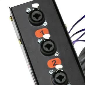 Medusa montada pela Cirilo Cabos com conectores Combo, marca própria. A vantagem do combo é poder plugar dois tipos distintos de conectores, o XLR e o P10 plug banana. Na ponta dos cabos vão conectores XLR macho. Este produto é ideal para transmissão de som profissional, sem prejuízos na qualidade ou interferência de ruídos externos.