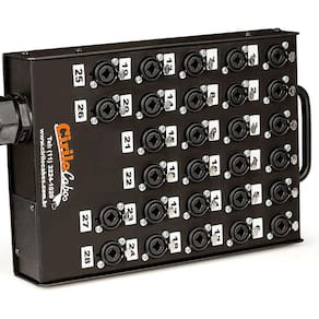 Medusa 48 Vias Com Conectores Combo - Cirilo Cabos 35 Metros Medusa montada pela Cirilo Cabos com conectores Combo, marca própria. A vantagem do combo é poder plugar dois tipos distintos de conectores, o XLR e o P10 plug banana. Na ponta dos cabos vão conectores XLR macho. Este produto é ideal para transmissão de som profissional, sem prejuízos na qualidade ou interferência de ruídos externos. A medusa é um componente indispensável em um sistema de som profissional, ideal para show, eventos e outros. O produto reune diversas vantagens: transmissão de áudio ógico sem interferências eletromagnéticas ou ruídos externos; praticidade na organização do palco, distribuição dos instrumentos e dos músicos; segurança ao reduzir o fluxo de cabos levados até a mesa técnica e economia na compra de cabos. O produto montado pela Cirilo Cabos é composto por 48 vias com Conectores Combo Painel. A estrutura feita em metal com pintura epóxi preto, tem uma alça para facilitar o transporte. O cabo espaguetado e numerado via-a-via orienta para usabilidade do produto. São três marcas de multicabos, por profissionais especializados, para montagem das medusas: TiaFlex, SparFlex ou Datalink. As medusas são montadas de acordo com disponibilidade do de cabos multicanal. Além desta configuração a empresa monta pedidos personalizados. Medusa com fabricação artesanal com 6 até 48 vias. Para configurações com canais acima de 48 vias, consulte os vendedores. Canais: 48 Vias Bandeja: 6 x 28,5 x 35 cm Conector painel: Combo Conector cabo: XLR macho Diâmetro do cabo: 27,10 mmMarcas de cabos disponíveis: TiaFlex, SparFlex ou Datalink Condutor: Corda de cobre estanhado OFHC 24 AWG; dreno de cobre estanhado OFHC + fita de poliéster Isolação: Termoplástico resistente a altas temperaturas e baixa retração durante a solda. Precisa de uma configuração especifica Aqui na Cirilo Cabos nós temos diversas configurações, de 6 vias até 48 vias, podendo ser montadas de acordo com a sua necessidade. Dentro dessa variação de 6 a 48 vias o valor será o mesmo apresentado no site. Qualquer outra configuração acima disso, por favor, consulte nossos vendedores de Segunda á Sexta das 09:00 às 18:00. Marca: Não Informado