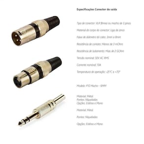 Medusa montada pela Cirilo Cabos com conectores Combo da marca Cirilo Cabos. A vantagem do combo é poder plugar dois tipos distintos de conectores, o XLR e o P10 plug banana. Na ponta dos cabos vão conectores XLR macho. Este produto é ideal para transmissão de som profissional, sem prejuízos na qualidade ou interferência de ruídos externos.