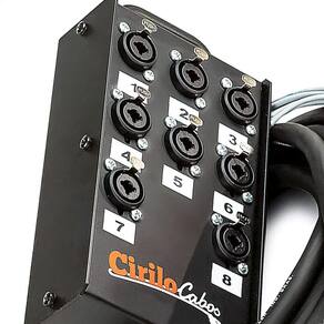 Medusa 8 Vias Com Conectores Combo - Cirilo Cabos 35 Metros Medusa montada pela Cirilo Cabos com conectores Combo, marca própria. A vantagem do combo é poder plugar dois tipos distintos de conectores, o XLR e o P10 plug banana. Na ponta dos cabos vão conectores XLR macho. Este produto é ideal para transmissão de som profissional, sem prejuízos na qualidade ou interferência de ruídos externos. A banheira da Cirilo Cabos feita em metal com pintura epóxi preto, tem uma alça para facilitar o transporte. O cabo espaguetado e numerado via-a-via orienta na usabilidade do produto. Na extremidade do multicabo, tem uma mola de proteção. Esta caixa de conectores é resistente e durável, suporta o ritmo de trabalho de quem produz engenharia sonora. A Cirilo Cabos oferece as melhores soluções em cabos e conectores. Produto com qualidade e garantia Cirilo Cabos. Especificações Técnicas Canais: 8 Vias Marca: Cirilo Cabos Conector painel: Combo Conector cabo: XLR macho Diâmetro do cabo: 12,90mm Veias internas 24 AWG: 0,20 mm Marcas de cabos disponíveis: TiaFlex, SparFlex ou Datalink Condutor: Corda de cobre estanhado OFHC 24 AWG; dreno de cobre estanhado OFHC + fita de poliéster Isolação: Termoplástico resistente a altas temperaturas e baixa retração durante a solda Garantia de 3 meses. Tamanhos Disponíveis na Cirilo Cabos 5, 10, 15, 20, 25, 30, 35, 40, 45, 50, 55, 60, 65, 70, 80, 90 e 100 metros Precisa de uma configuração especifica Aqui na Cirilo Cabos nós temos diversas configurações, de 6 vias até 48 vias, podendo ser montadas de acordo com a sua necessidade. Dentro dessa variação de 6 a 48 vias o valor será o mesmo apresentado no site. Qualquer outra configuração acima disso, por favor, consulte nossos vendedores de Segunda á Sexta das 09:00 às 18:00. Garantia: 3 meses Atenção: Verifique a compatibilidade com seu equipamento antes da compra, não nos responsabilizamos por incompatibilidades. Conteúdo da embalagem Medusa 8 Vias com Conectores Combo - Cirilo Cabos