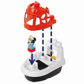 Conteúdo da Embalagem: 1 rebocador, 1 figura do Mickey Mouse e 16 blocos grandes com peças e decorações especiais