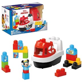 Conteúdo da Embalagem: 1 rebocador, 1 figura do Mickey Mouse e 16 blocos grandes com peças e decorações especiais