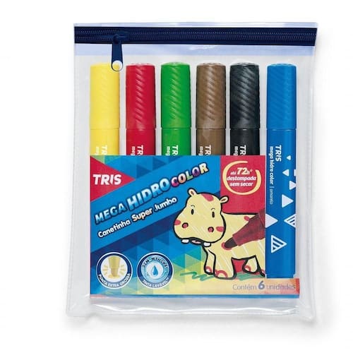 - 1 ESTOJO DE MEGA CANETA HIDROCOLOR TRIS SUPER JUMBO COM 6 CORES