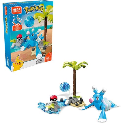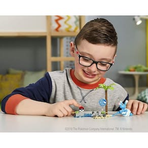 Dance em batalha com Brionne! Pokemon Trainers podem praticar seus ataques do tipo água quando eles espirram seu caminho para a batalha com seu próprio Brionne! Construa este pokemon icônico, em seguida, aumentar o ritmo sobre o espírito de luta de Brionne quando você construir um ambiente tipo água. a cena vem completa com detalhes autênticos de efeito de batalha e um suporte de exibição com tema de água construível para o mini Poke Ball incluído! Ideal para maiores de 6 anos.