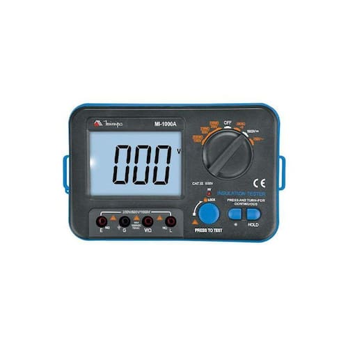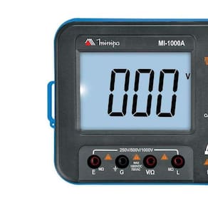 Megômetro digital portátil tensão ac/dc data hold cat iii 600v minipa mi-1000a O megômetro digital portátil tensão dc/ac data hold cat iii 600v minipa mi-1000a possui um conversor de tensão dc de baixo consumo, armazenamento de energia produtiva para converter tensão dc e alta taxa de conversão. Ideal para medição de resistência de isolação de máquina elétricas, equipamentos eletrônicos, cabos, instalações elétricas, entre outros. Características:Display: lcd 3 1 / 2 dígitos 2000 contagens Taxa de amostragem: aproximadamente 3 vezes/sIndicação de sobrefaixa: 1Medição de resistência e continuidadeMedição de tensão ac/dcIluminação do displayData holdBotão de trava para medidas de isolação contínuasIndicação de bateria fraca: símbolo mostrado no visorTemperatura: operação: -15ºc a 55ºc, u.R.28cAlimentação: 6 baterias aa de 1,5vAltitude de operação: abaixo de 2000mConsumo: Segurança: iec61010 cat iii 600vDimensões: 62,5 a x 175 l x 110 p mmPeso: aprox. 580g incluindo baterias Acessórios inclusos:Manual de instruçõesPontas de prova 1 par Garras jacaré 1 par Alça de ombro Imagens meramente ilustrativas