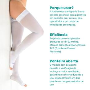 Meia antiembolia Sigvaris, Meia coxa 7/8 antitrombo, prevenção de trombose, compressão graduada 18-23 mmHg, meia hospitalar branca, meia para pós-operatório, Sigvaris látex free, ponteira rebatível, meia esterilizada, segurança hospitalar, saúde venosa