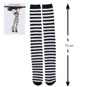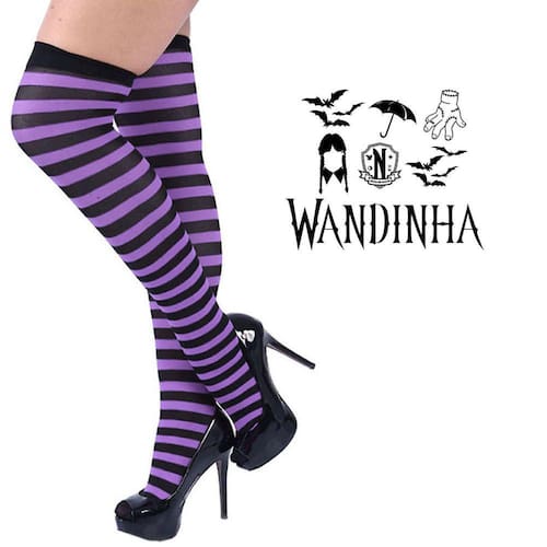 Meia 7/8 Wandinha Listrada Branco e Preto: Festa Fantasia Cosplay Dança Carnaval.