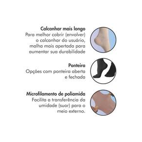 ? Punho menos compressivo ? Banda de silicone com melhor reforço e com única costura ? O elástico da cintura é confeccionado pela própria máquina ? Calcanhar anatômico, reforçado e mais longo ? Excelente elasticidade ? Contém bacteriostático