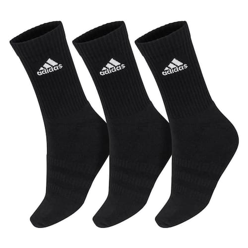 Descrição da Meia Adidas Cushion Cano Alto Pack com 03 Pares 41 ao 43 Preto O maior objetivo da Adidas é que os atletas tenham conforto e bem estar ao utilizar os seus produtos. Sempre em busca de desenvolver artigos esportivos de qualidade e que ajudem na prática dos exercícios para o máximo desempenho, a Adidas está surpreendendo cada vez mais em tecnologias. A Meia Adidas Cushion Cano Alto Pack com 03 Pares 41 ao 43 Preto vai provar isso à você, ela absorve a umidade, oferece excelente respirabilidade em temperaturas mais altas e proporciona um ótimo conforto. Conheça as características da Meia Adidas Cushion Cano Alto Pack com 03 Pares 41 ao 43 Preto - Perfil: Casual e Esportivo; - Material: 60% algodão, 36% poliéster, 3% elastano e 1% Poliamida; - Detalhamento: Meia na cor preta, pack com 03 pares, logo Adidas em destaque, tecido macio e confortável. Suave compressão na região do médio pé. Cano longo com 18cm, calça do 41 ao 43; - Origem: Nacional.