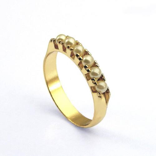 MEIA ALIANÇA BANHADA OURO 18 K C/ 6 PÉROLAS SINT.-1010018