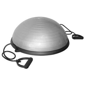 Meia Bola Bosu Antiestouro com Alças - Cor CinzaBosu Ball ou Meia Bola Bosu Odin Fit (como também é conhecida) é ideal para o seu treinamento funcional.Com a Meia Bola é possível realizar diversos movimentos proporcionando ganho de força, equilíbrio, agilidade, elasticidade e condicionamento físico, devido a sua instabilidade de equilíbrio na realização de exercícios neste equipamento.Ela possui um par de alças de látex possibilitando a realização de exercícios utilizando também os membros superiores, conseguindo assim, trabalhar todos os músculos do corpo.Possui sistema anti-estouro, trazendo mais segurança para o usuário.Especificações:-dimensões: 58 x 25cm;-peso: 5,5kg;-cor: Cinza;-peso de suporte máximo recomendado: 200kg.Contém:-1 (uma) Meia Bola- Odin Fit;-1 (um) par de resistores elásticos;-1 (uma) bomba de ar.Garantia de 3 meses contra defeitos de fabricação.