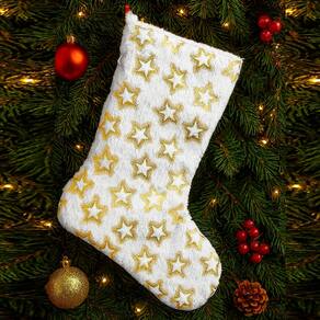 Meia Bota e Saia Enfeite Estrelinhas Árvore Natal Pelúciado -