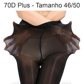 Meia Calça Elástica 70D Anticelulite Brilhante Resistente Cintura Alta Preta - Plus Size 46/50. Incrível, meia-calça disfarça celulite, corrigindo imperfeições da pele. Cintura alta reforçada, possui transparência brilhante, toque suave e elasticidade. A meia calça das famosas! Modelo inovador com suave compressão, disfarça a barriguinha e modela as pernas, dando efeito de pele perfeita. Resistente, fácil de vestir, confortável, cintura que não marca e se ajusta ao corpo. Realça a beleza de suas pernas com suave brilho e conforto. Efeito óleo (acabamento brilhante) que realça suas pernas, destacando-as e adicionando brilho aos looks. Ideal para se sentir poderosa em todas as ocasiões. Tamanho único que atende até o tamanho 46/50 - Modelo Plus Size acomodando e modelando bumbum e interno de coxas de forma suave e confortável. Cores disponíveis: Preto. Composição: 90% acrílico, 10% elastano. Atenção: Produto de alto giro. Recebemos novas remessas semanalmente e algum detalhe pode variar conforme o lote recebido, porém o produto é o mesmo e mantém as mesmas características e qualidade. Importante: O produto é resistente, mas como toda meia calça também desfia, portanto, a durabilidade do produto depende dos seus cuidados e atenção na colocação e manuseio. Contém: 1 meia calça tamanho Plus na cor Preta. Fotos ilustrativas e reais do produto.