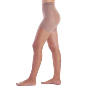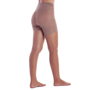 Meia calça com efeito modelador. Modela as coxas, reduz culote, levanta bumbum e comprime a barriga.