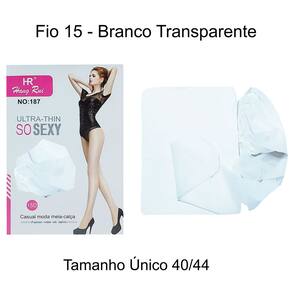 Meia Calça Fina Transparente Fio 15 Branco - Tamanho Único 40 ao 44. Super fina, delicada, com efeito transparente, quase imperceptível aos olhos. Toque suave e macio. Disfarça imperfeições da pele, deixando as pernas ainda mais bonitas. Ideal para casamento, shows de dança, complementando aquela fantasia e mesmo para o dia a dia. Comprimento aproximado da meia ao retirar da embalagem: 100 cm comprimento - Cavalo 22 cm. Possui elasticidade. Cor da meia: Branca. Cavalo com dupla costura na frente e nas costas, acomodando suavemente coxas e bumbum. Indispensável no guarda-roupa da mulher moderna, pois vai bem em qualquer ocasião, do clássico ao mais ousado. Combina com qualquer tipo de calçado, o que proporciona versatilidade na peça. Atenção: Produto de alta rotatividade. Recebemos novas remessas semanalmente e algum detalhe pode variar conforme o lote recebido, porém o produto é o mesmo e mantém as mesmas características e qualidade. Composição: 80% poliéster, 20% elastano. Importante: O produto é delicado e macio. A durabilidade depende de seus cuidados, vista delicadamente, evitando manusear com unhas compridas ou quebradiças, lavar à mão e secar a sombra. Contém: 1 Meia Calça 15D Branca em tamanho único. Fotos ilustrativas e reais do produto.