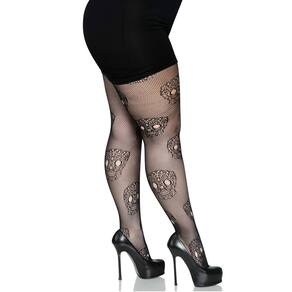 - Spooky nunca pareceu tão sexy como nas meias arrastão Leg Avenue Lace Skull Fishnet. A meia-calça de designer apresenta uma meia arrastão clássica, padrão de caveira de açúcar de renda ousada e ajuste de cintura alta