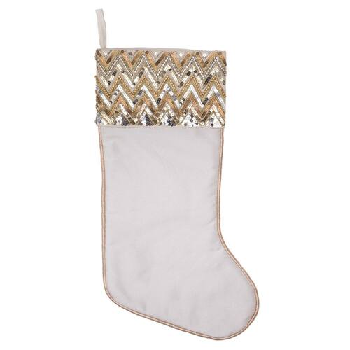 Meia de Natal Vickerman de 19" branca Chevron Sequin