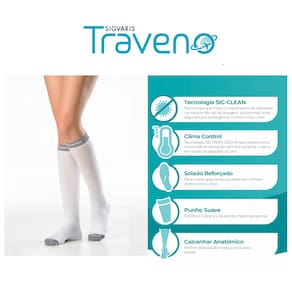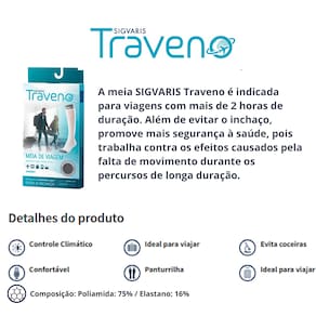 A Meia SIGVARIS TRAVENO é a companhia perfeita para viagens com mais de 2 horas de duração, proporcionando conforto e proteção durante todo o trajeto. Desenvolvida para evitar inchaços e melhorar a circulação venosa, é ideal para quem busca bem-estar em qualquer tipo de deslocamento.