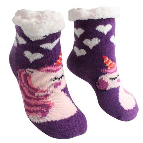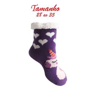 Meia Infantil Peluciada Antiderrapante Roxa Unicórnio 28 ao 35 -