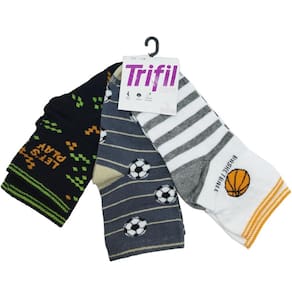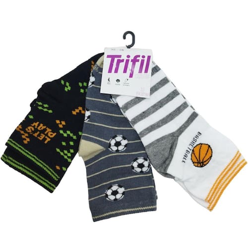 O kit de meia cano médio infantil Trifil conta com 3 pares de meias em algodão, poliamida e poliéster, garantindo maciez e ótima absorção de suor no dia a dia dos pequenos. O elástico é de boa qualidade para maior durabilidade e firmeza. Possui elastano. O modelo de cano médio é ideal para usar em momentos de lazer, dia a dia e passeios. Veste do 24 a 29. Garanta já!