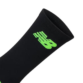 - Detalhamento: Contém um par de meia com cano alto (19cm), oferece suave compressão na região do médio pé, disponíveis nas cores preta e verde. As meias possuem o logo New Balance na região do cano e vestem do tamanho 39 ao 42;