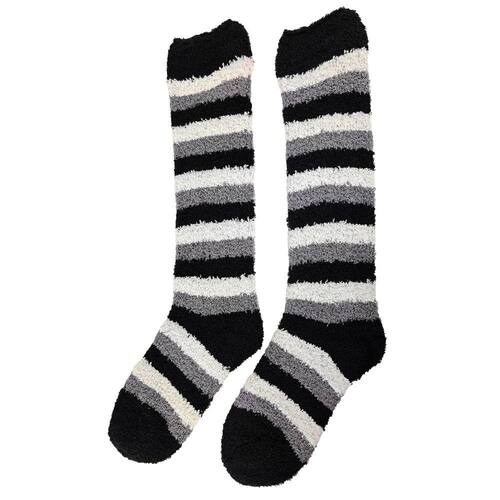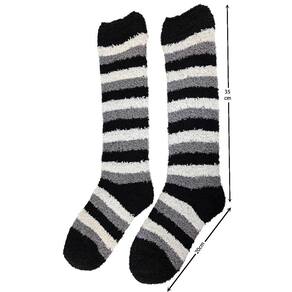 Meia Pelúcia Feminino Adulto 3/4 Longa Inverno Quente Proteção Frio Listras - Preto - Único